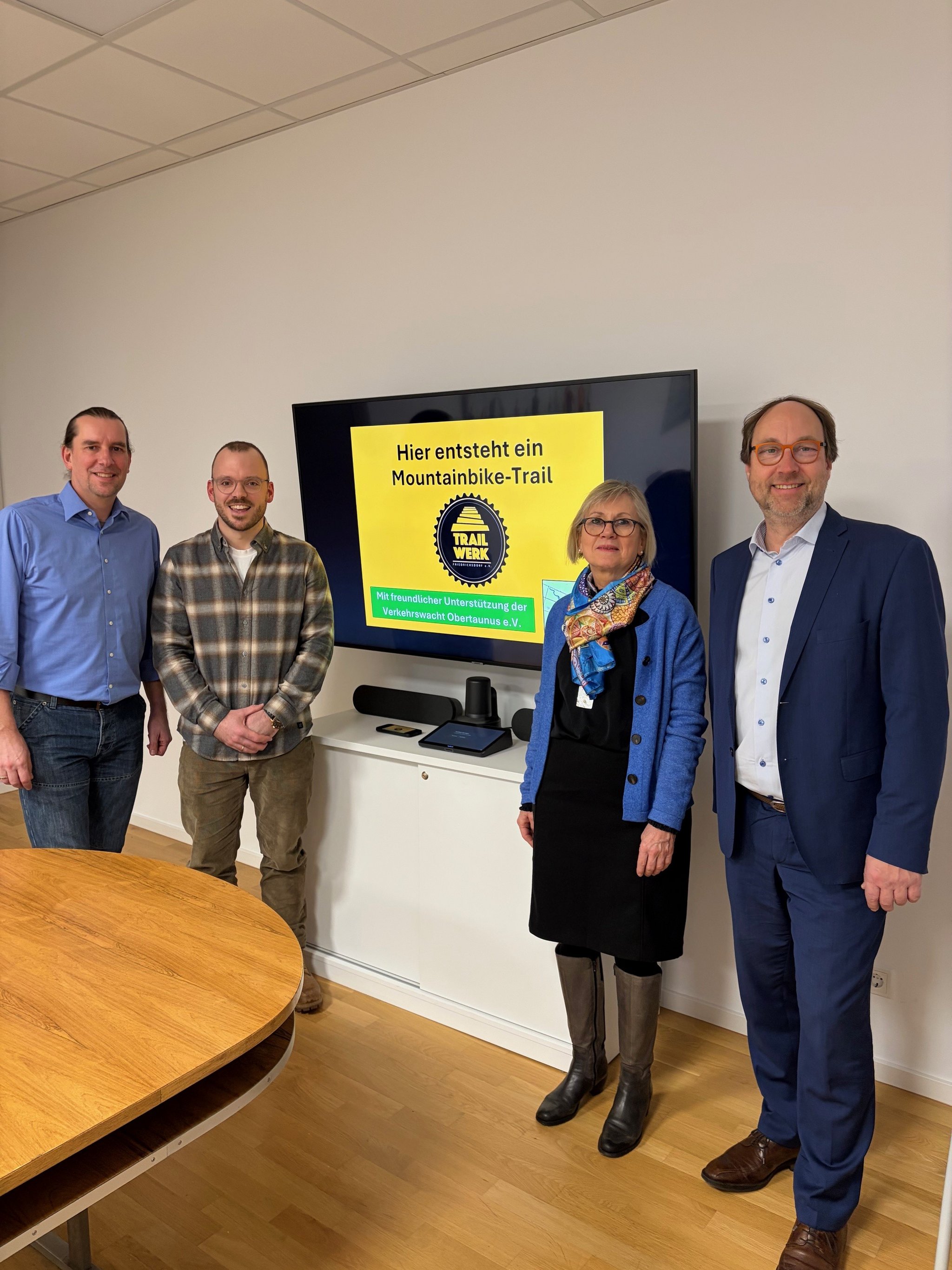 Die Stadt Friedrichsdorf und der Verein Mountainbike Club Trailwerk Friedrichsdorf e.V. haben nun eine Vereinbarung zur Anlage und Betreibung des Flowtrails im Stadtwald Friedrichsdorf geschlossen. Diese wurde von Bürgermeister Lars Keitel, der Ersten Stadträtin Ingrid Schunk und den Vorstandsmitgliedern des Vereins Maximilian Linker und Jörg Waldmann im Rathaus unterzeichnet.